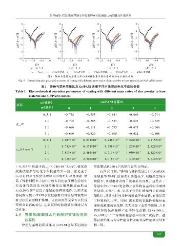 表1 粉与基料质量比及 Gr/PANI含量不同时涂层的电化学 参数
